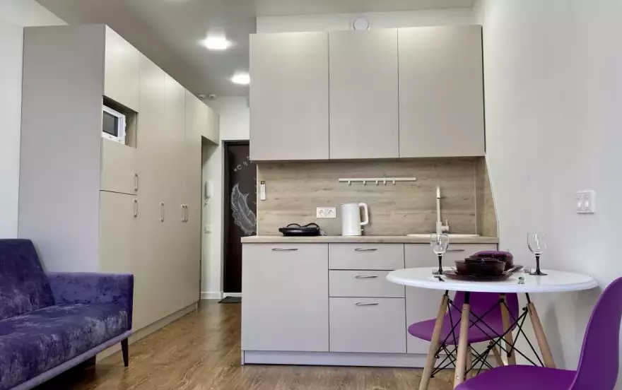 Привлекательные апартаменты "ПУРПУР" в элитном жилом комплексе с отличным ремонтом. Новый дом, красивый и просторный холл в подъезде, консьерж на входе.