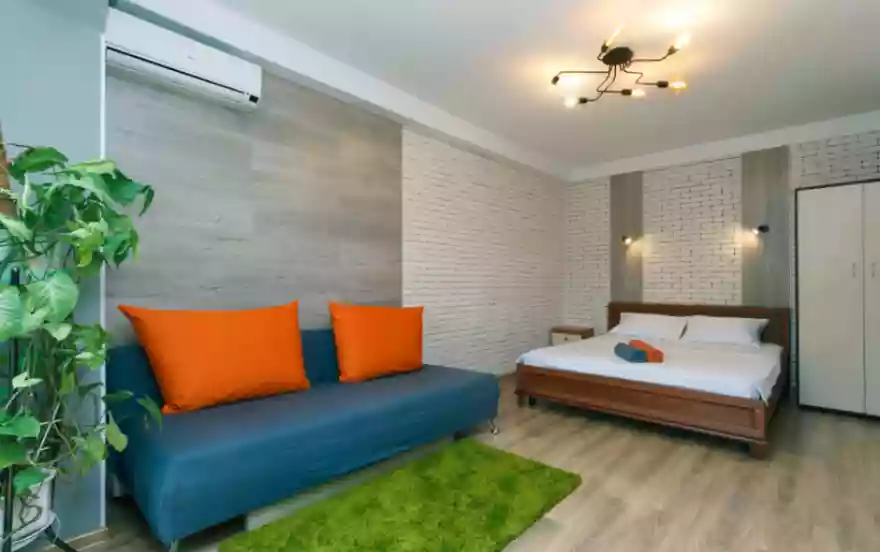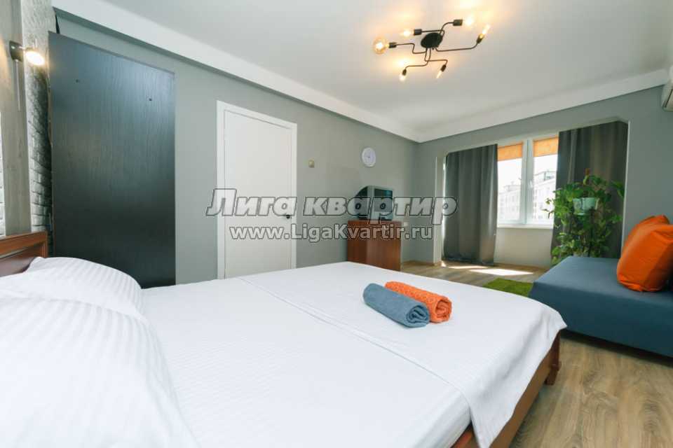 Новая мебель – кровать с ортопедическим матрасом и диванчик в стиле СССР (2+1 спальных мест), стеклопакеты. Чистые постельные и банные принадлежности.