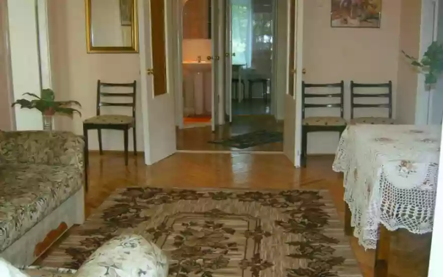 Все комнаты оборудованы кондиционерами, интернет WIFI, есть стиральная машина-автомат, большой LCD-TV, электро-бойлер и центральная теплосеть, газовая плита с вытяжкой, микроволновка, электрочайник, посуда. Качественные постельные комплекты и полотенца, средства гигиены, утюг, гладильная доска, сушилка для белья, есть тапочки и разные нужные мелочи. Цена за сутки от 40 долларов до 80 долларов, зависит от длительности аренды и количества проживающих человек. Оксана Леонидовна, хозяйка