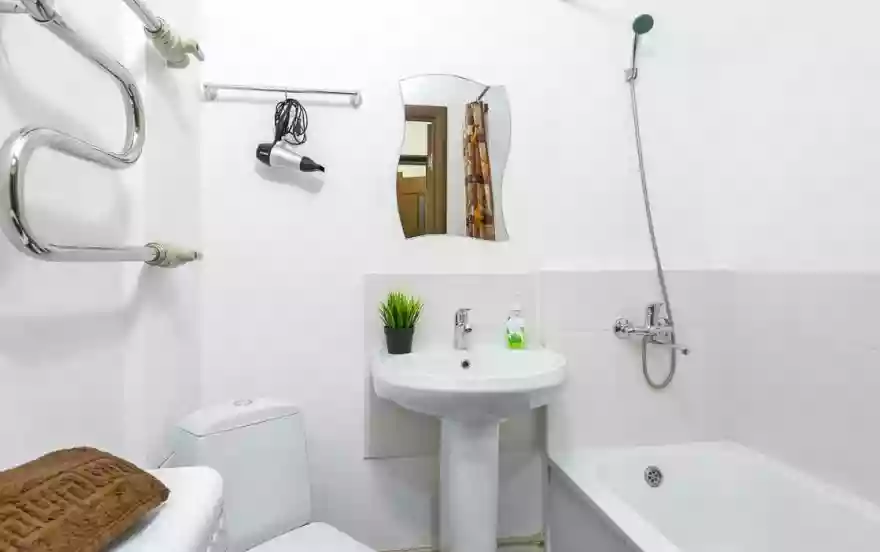 В квартире есть всё для комфортного проживания: двуспальный диван, раскладушка с ортопедическим матрасом, Wi-Fi, телевизор с кабельным ТВ, акриловая ванна, фен, постельное бельё и полотенца (включено в стоимость проживания), сушилка для белья, водонагреватель (на случай отсутствия горячей воды), вентилятор, шкаф.