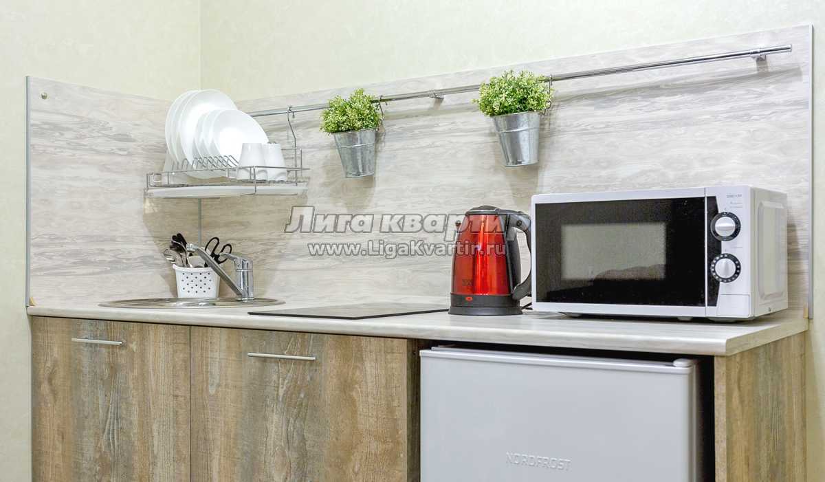 В наличии вся бытовая техника: стиральная машина, микроволновка, чайник, холодильник, электроплита, посуда, утюг, гладильная доска.