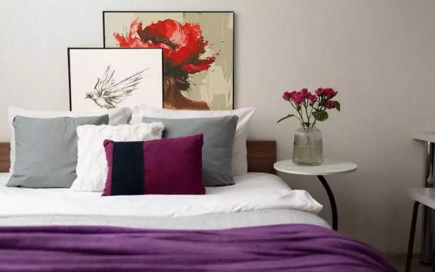 широкая двуспальная кровать с чистым белым постельным бельём для крепкого сна.