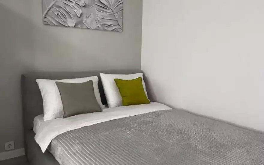 Широкая двуспальная кровать с чистым белым постельным бельём для крепкого сна.