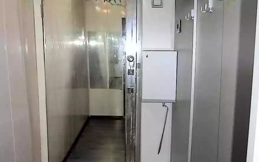 В ванной комнате вытяжная система для курящих, стиральная машина и раздвижные сушилки для белья, водонагреватель (на случай отключения горячей воды), душевая стойка с массажным душем, зеркало с подсветкой и большое зеркало на стене. Всегда в наличии средства для уборки и личной гигиены.