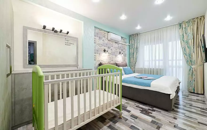 ▹ двуспальная кровать в спальне и комфортный двуспальный диван в гостиной; детская кроватка и большая кровать в детской