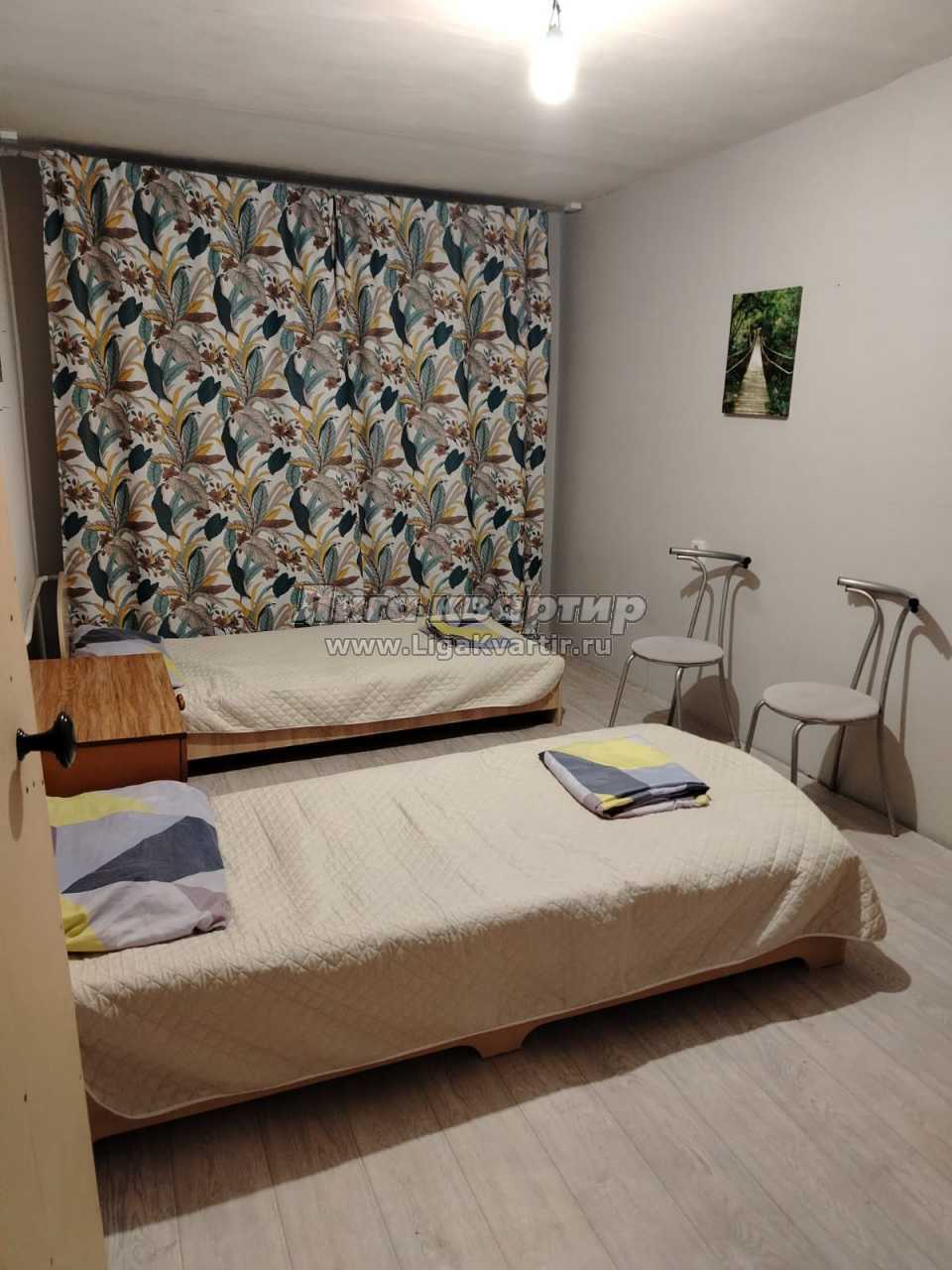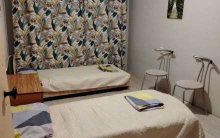 Хорошее состояние . Возможно размещение до 6 человек. В квартире есть всё необходимое для проживания. Один диван и 5 односпальных кроватей. Любой срок от 3 суток до 1 года.