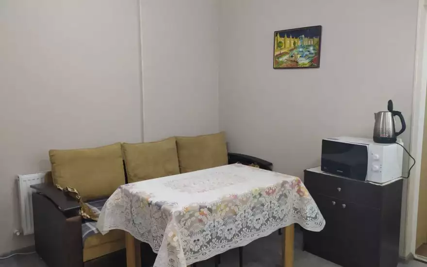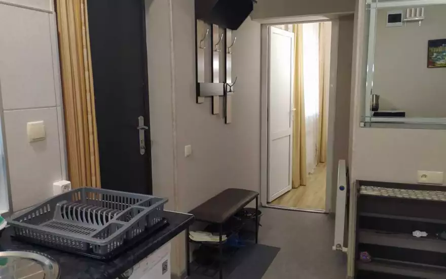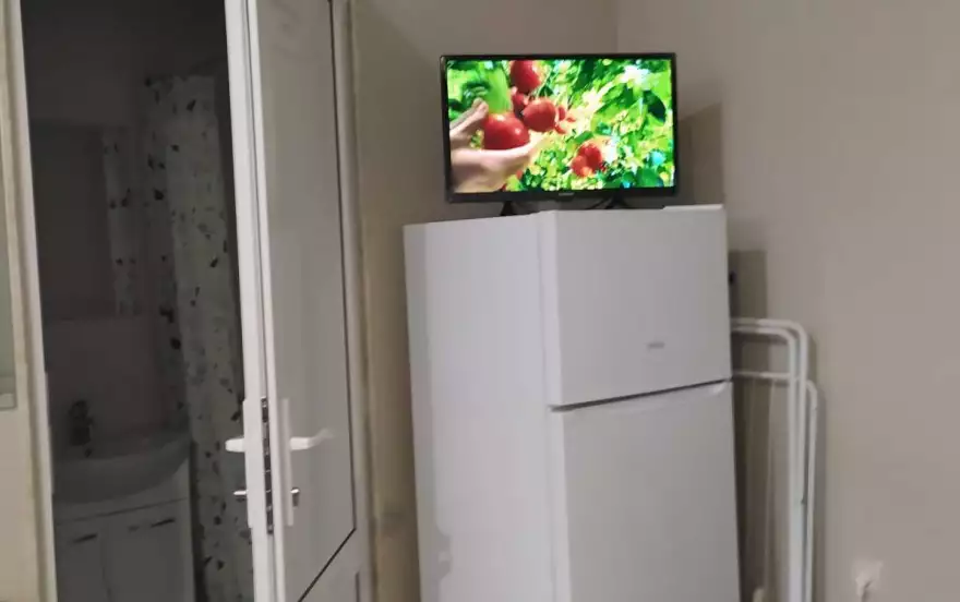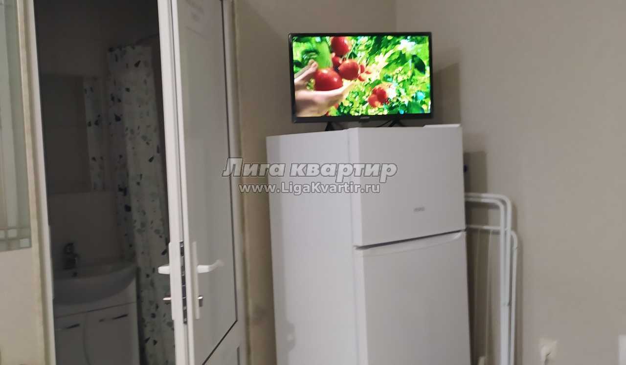 Кухня- прихожая с раскладывающийся диваном с допспальным местом, холодильником, смарт телевизором,