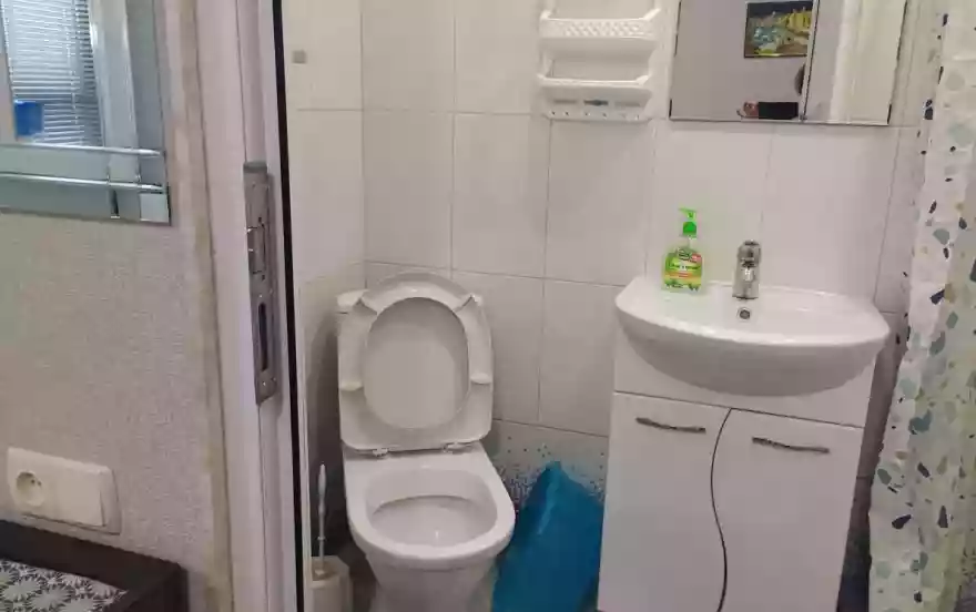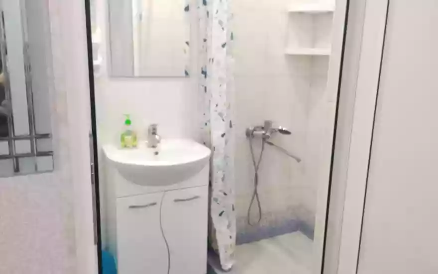 Санузел с душевой, круглый год горячий полотенцесушитель,