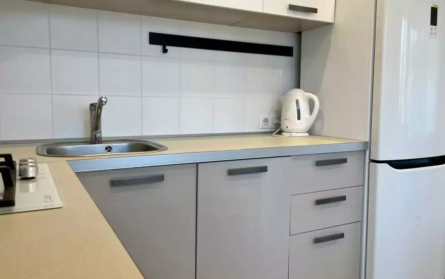 • Полный комплект бытовой техники (СВЧ, холодильник, эл.чайник, плита, стиральная машина, утюг + гладильная доска + сушилка для белья)