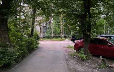 Хороший зеленый двор с большим количеством парковочных мест.
