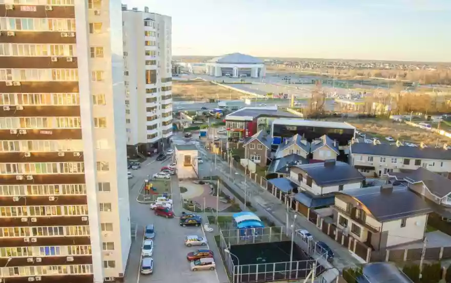 В непосредственной близости находится Выставочный комплекс Экспоград Юг, мультимедиапарк «Россия — моя история», ТРЦ "Красная площадь", миграционный центр, автосалоны AUDI, KIA,TOYOTA, Mercedes-Benz, MINI, Краснодарский Ипподром, КП Золотой город, Немецкая деревня, Бауцентр. В шаговой доступности ресторан «Макароны», фитнес клуб Пеликан, Магнит, Пятерочка, салоны красоты, аптека. Во дворе отличная парковка и детская спортивная площадка с тренажерами. Близкое расположение к удобным транспортным развязкам и основным дорогам делает перемещение в любые районы города удобным и быстрым. Время движения в центр, район кинотеатра «Аврора», не более 15 мин.