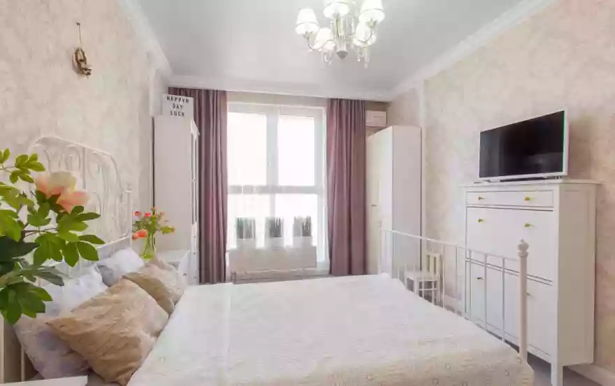 Расположена на 12 этаже нового дома бизнес класса (ЖК Большой). В квартире двуспальная кровать, раскладывающийся диван, жк телевизор в комнате и на кухне, журнальный столик, фен, утюг, wi-fi. Кухонная зона оборудована всем необходимым для приготовления еды.