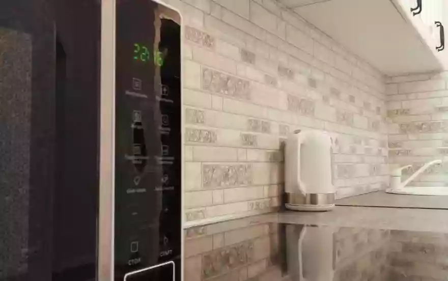 -электрический чайник, варочная панель, микроволновая печь, холодильник