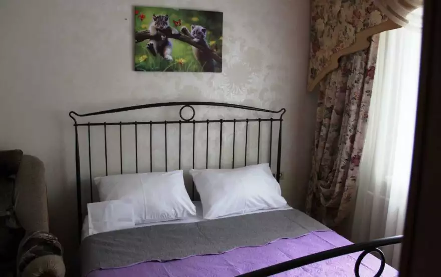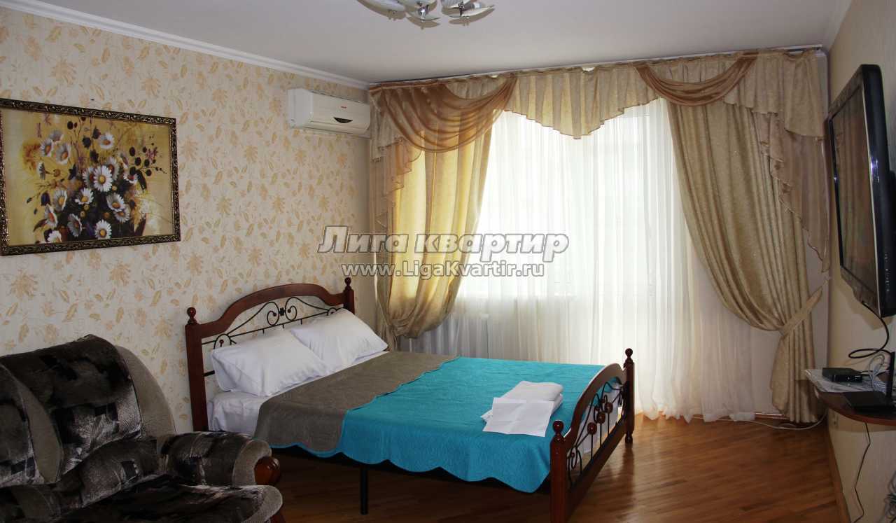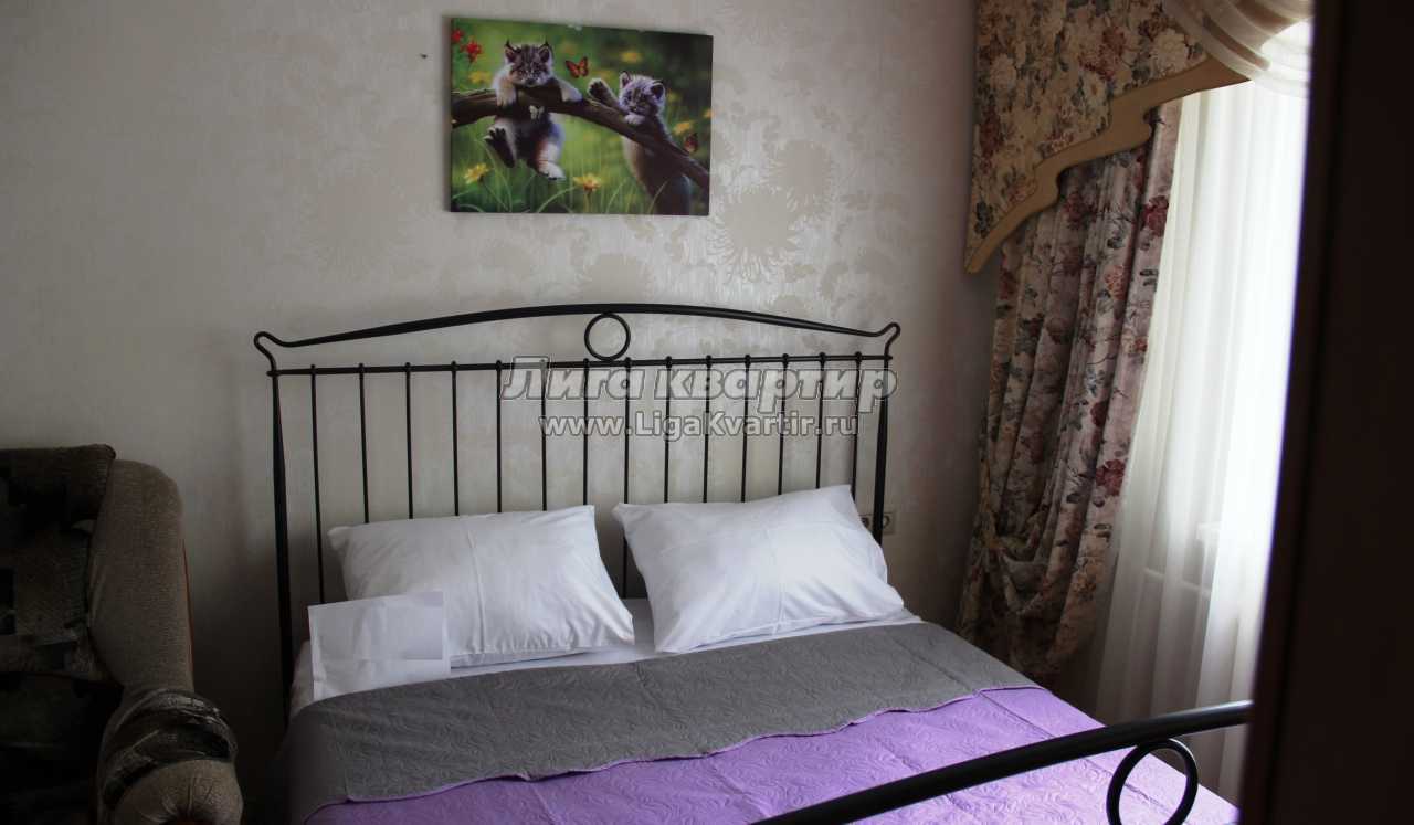 В квартире 2 большие двуспальные кровати, раскладной диван-кровать - 2 шт, кухня с электроплитой, где имеется вся необходимая посуда и принадлежности. Окна выходят во двор!