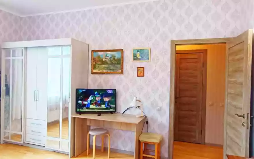 — Smart-TV, Wi-Fi, Высокоскоростной интернет 5 G, мебель, шкаф для одежды, стол для работы, настольная лампа, светильники у кроватей.