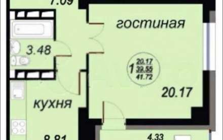 Продаётся 1 комнатная квартира общей площадью 42 м2 на 9/24 этаже.