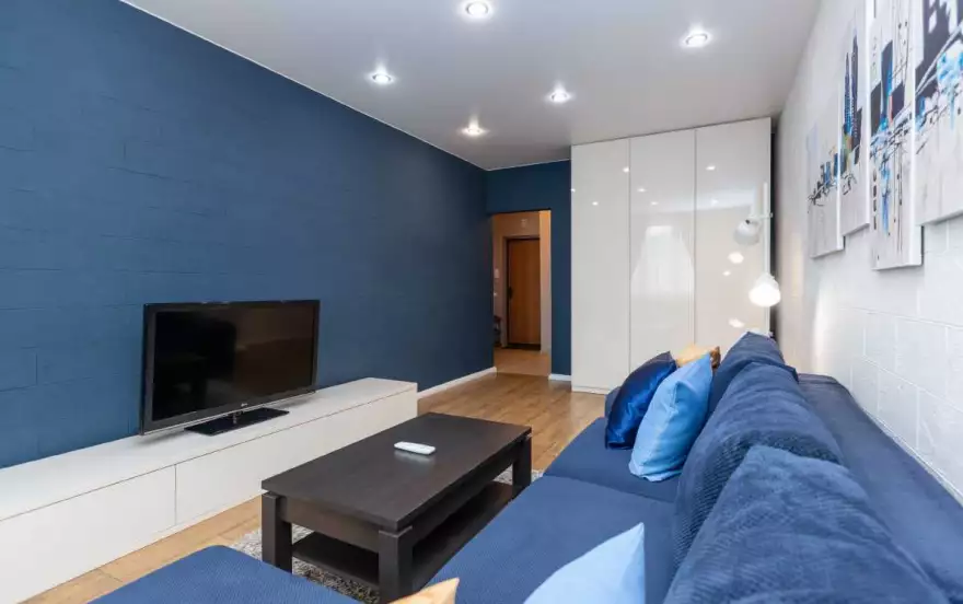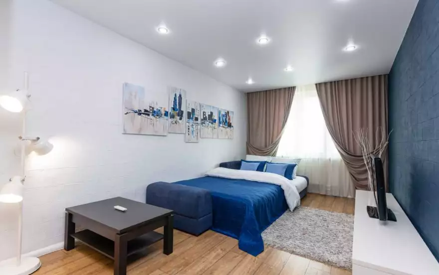✔ Современный интерьер комнаты обеспечит стильную зону комфорта. Мягкий диван, легко преобразующийся в двуспальное место, очень удобен для спокойного сна и безмятежного отдыха. Для развлечения предусмотрены Wi-Fi и кабельное телевидение со множеством каналов. Вещи можно расположить в шкафу-купе и на журнальном столике. Пушистый ковер дополняет уютную атмосферу.