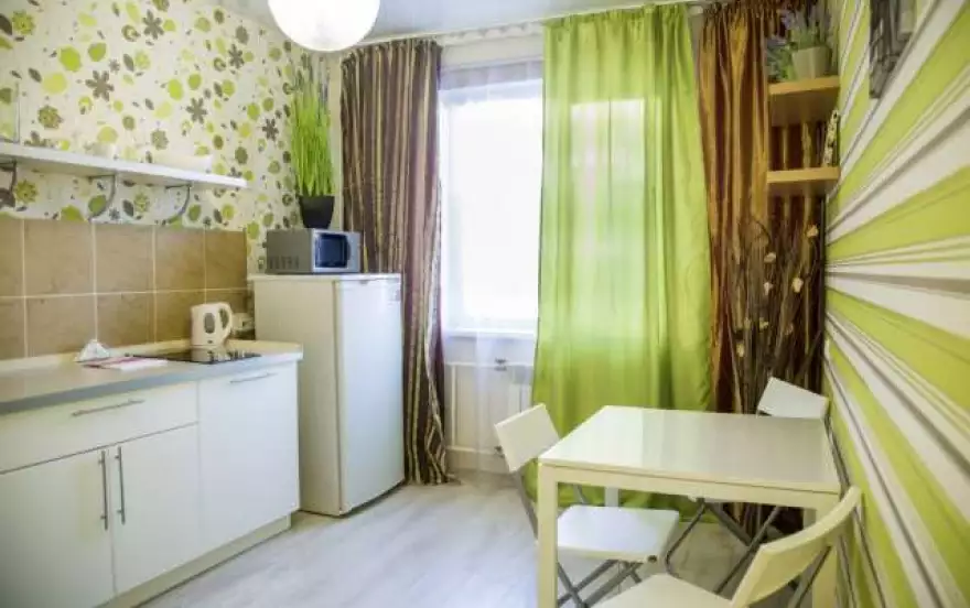 Уникальная однокомнатная квартира в Советском районе. Интерьер комнаты выполнен в фиолетовых и лиловых тонах в сочетании с белым. Нежная, праздничная и радужная атмосфера царит в этой комнате, такой интерьер излучает тепло, от него веет запахом сирени, распускающейся весной. Сможете отдохнуть на двухместной удобной кровати и насладиться просмотром современного телевизора с кабельным телевидением. Кухня же выполнена в зеленых, красных и белых тонах. Зеленый цвет - символ жизни, энергии, обновления. Это прекрасное сочетание цветов вас успокоит, вернет душевное равновесие и даст ощущение защищенности. В шаговой доступности есть торгово-развлекательный комплекс «Сибирский городок», кафе-чайная «Арабика», служба доставки суши «Оригами», ресторан «Harley”s», аптека «СибМедик».