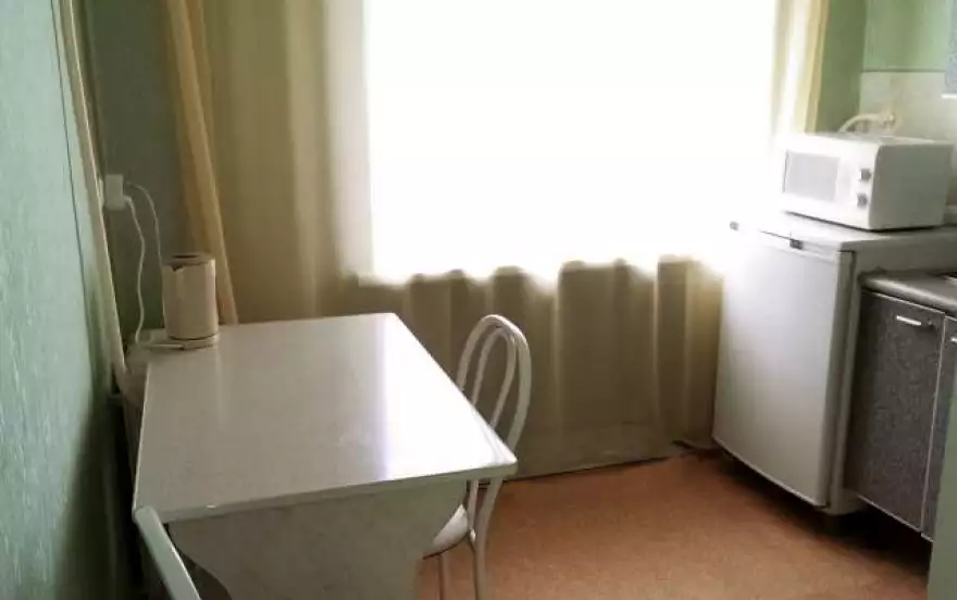Кухня полностью оборудована всем необходимым: кухонный гарнитур, обеденная зона, холодильник, варочная панель, микроволновая печь, посуда и столовые приборы.