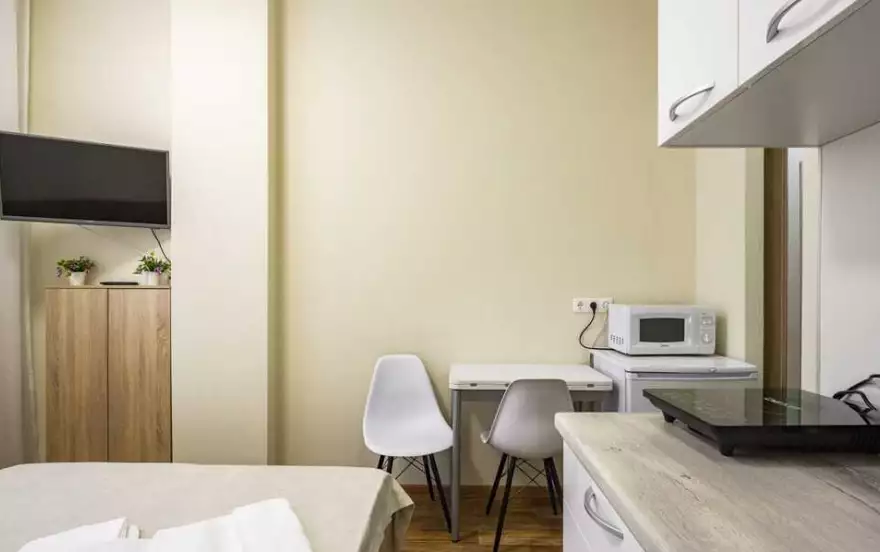 Комфортабельные апартаменты в деловом центре города. Располагаются в апарт-отеле Парк Сити. Оборудованы мебелью и бытовой техникой. Мини-кухня укомплектована принадлежностями для приготовления пищи.