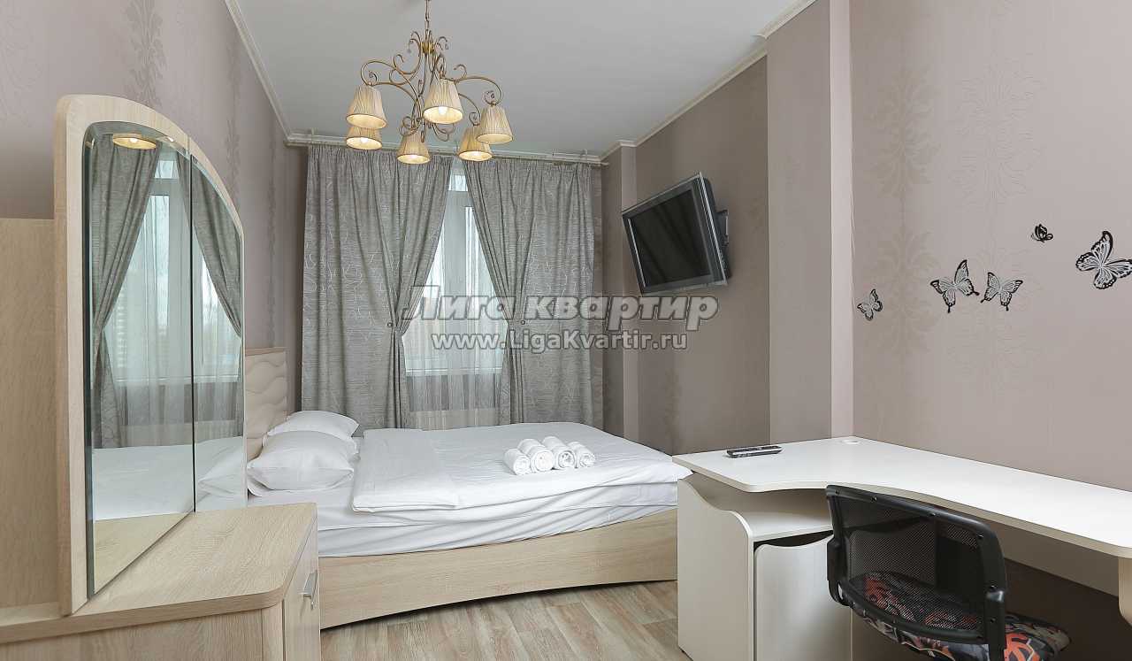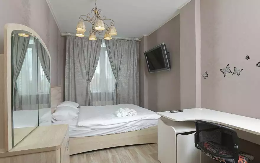 2х комнатная просторная квартира с современным ремонтом. В спальне большая широкая кровать и большой телевизор, письменный стол, где можно удобно расположиться с ноутбуком.