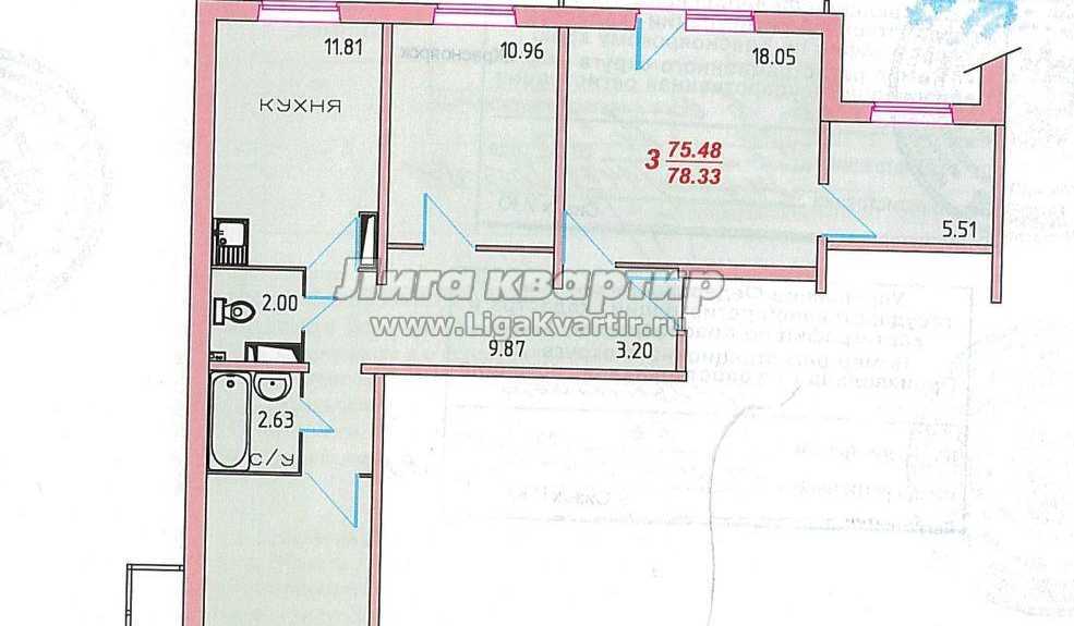 - Общая площадь: 78.3 м²
