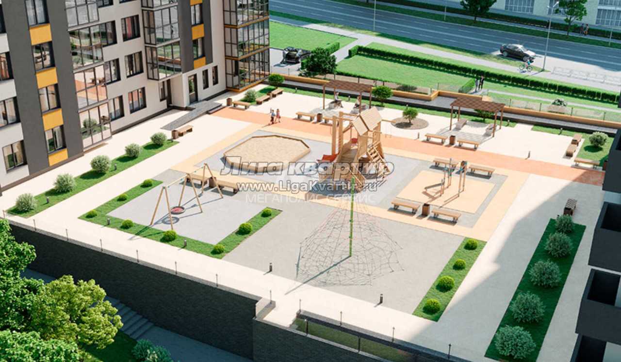 На территории комплекса планируется постройка закрытой благоустроенной детской площадки с игровой зоной.