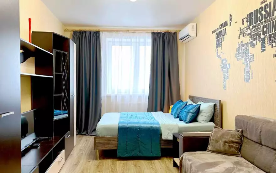 Сделан красивый дизайнерский ремонт для удобного и комфортного проживания. Удобное спальное место(двуспальная кровать с ортопедическим основанием 140*200) + диван (120*200).