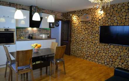 Вся мебель в квартире сделана на заказ по индивидуальному проекту. Дерево.
