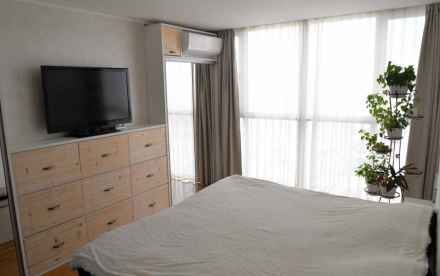 В стоимость квартиры входит мебель (спальные гарнитуры в комнатах, встроенный шкаф в холле, встроенный кухонный гарнитур со встроенной бытовой техникой) Холодильник, варочная панель, духовой шкаф – Hotpoint Ariston, современная вытяжка. Два кондиционера (на кухне и в спальне).