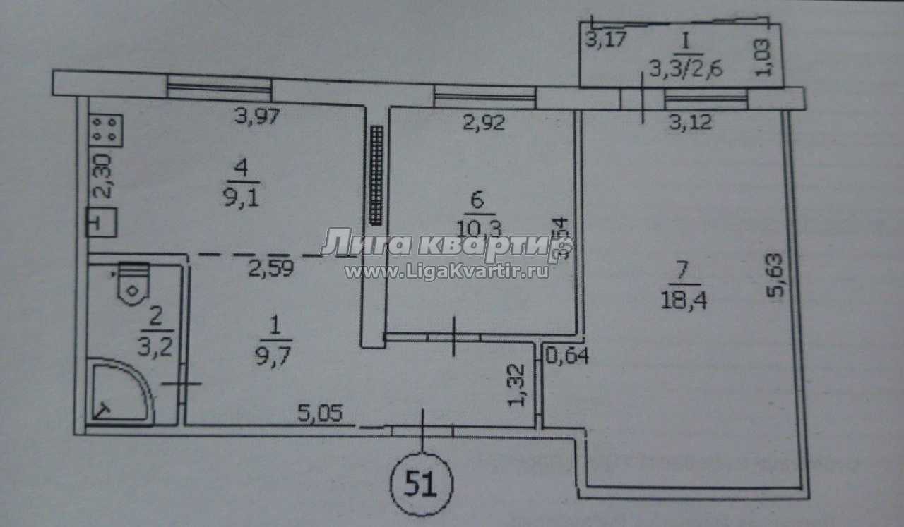 - Общая площадь: 51 м²