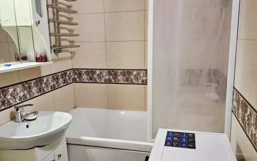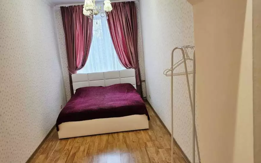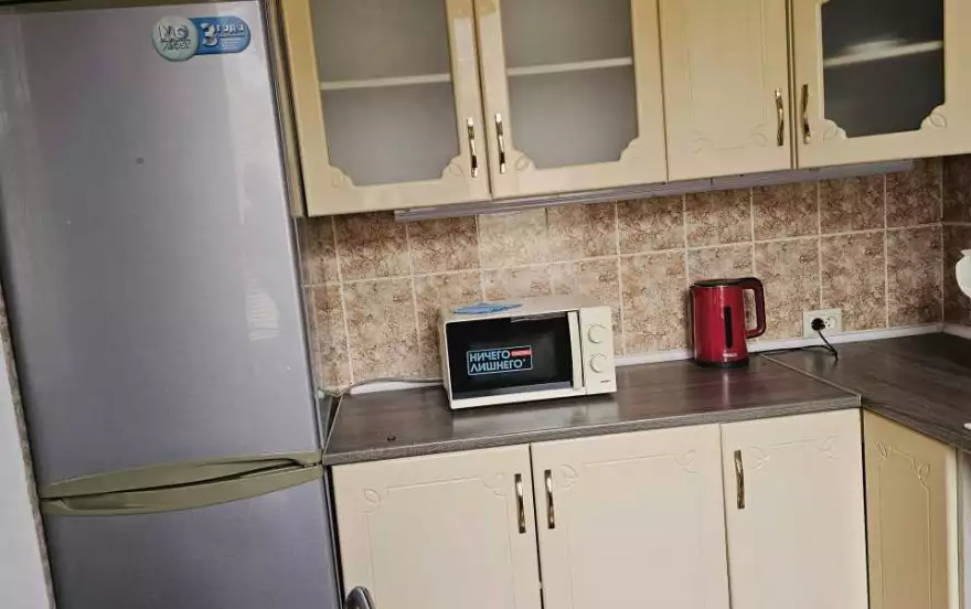 Квартира находится на третьем этаже пятиэтажного дома. Квартира оборудована для комфортного проживания мебелью и бытовой техникой. Всегда оплаченный интернет, телевидение, удобные, новые кровати, чистое постельное. В ванной средства гигиены, полотенца, новая стиральная машина. Кухня оснащена посудой, микроволновой печью, холодильником и газовой плитой.