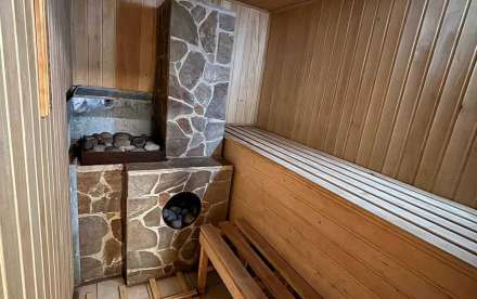 В доме 4 изолированные комнаты, большая уютная кухня, с/узел раздельный, 2-х контурный новый котел. Площадь - 77/52,7/11,2 кв.м, высота потолков 2,8 м. Крыша - ондулин, утеплена, дом - шлаконаливной, обложен кирпичом и обшит сайдингом, фундамент - фагот. Капитальный гараж (шлакоблочный), баня с каминной комнатой, мастерская, летние душ и туалет, глубокий сухой погреб (выложен дикарем), мангальная зона. Кондиционер.