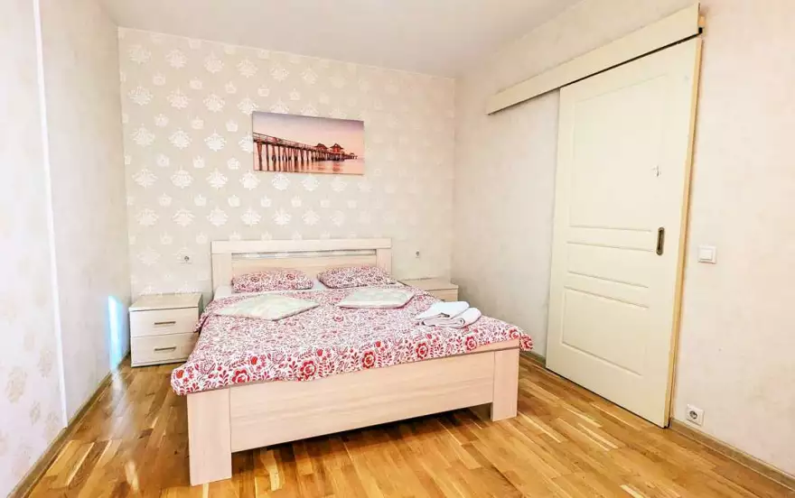 ✔️ В квартире могут расположиться до 3 человек. В спальне есть двуспальная кровать, на кухне диван-кровать.