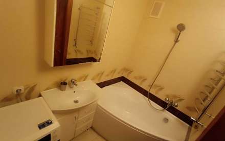 В квартире есть всё для жизни: кухня полностью оборудована, установлены холодильник, газовая плита, стиральная машина, телевизор, микроволновка. Мебель обычная, в хорошем состоянии.