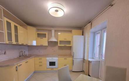 Просторная квартира 46 м² с большим количеством естественного света и аккуратным ухоженным интерьером. Светлые стены, ламинат, большие окна.