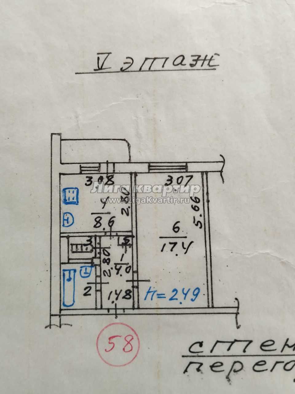 - Высота потолков: 2.49 м