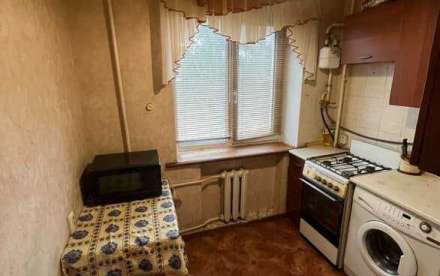 Кухня компактная, есть обеденная зона. Комнаты раздельные. Для комфортного проживания установлены стиральная машина, холодильник, плита газовая, микроволновка. Квартира частично меблирована, имеется раскладной диван и шкаф.