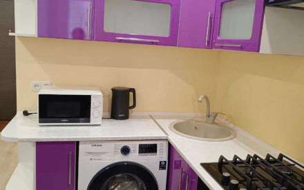 Имеется все необходимое для удобства и проживания стиральная машинка, пылесос, гладильная доска, кухонные принадлежности, микроволновка