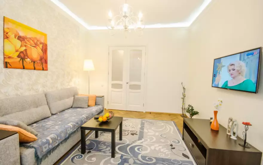 Находятся они в пяти минутах ходьбы от ст. метро «Октябрьская» в доме по ул. Янки Купалы (в доме есть лифт). Поблизости расположены: центральный парк им. Горького и парк им. Янки Купалы, Белгосцирк, Дворец Республики, Литовское посольство, магазины, клубы, рестораны, кафе, рынок, музеи, театры, банки, охраняемая автостоянка и многое другое. Стильная, уютная и светлая квартира идеальна для проживания и отдыха 1-4 человек. В спальне располагается большая двуспальная кровать с ортопедическим матрасом, в гостиной - двуспальный диван. В наличии имеется вся необходимая техника: микроволновая печь, чайник, холодильник, утюг, фен и многое другое. Помогут спокойно отдохнуть и оставаться в курсе событий цифровое ТВ и безлимитный интернет (WiFi).