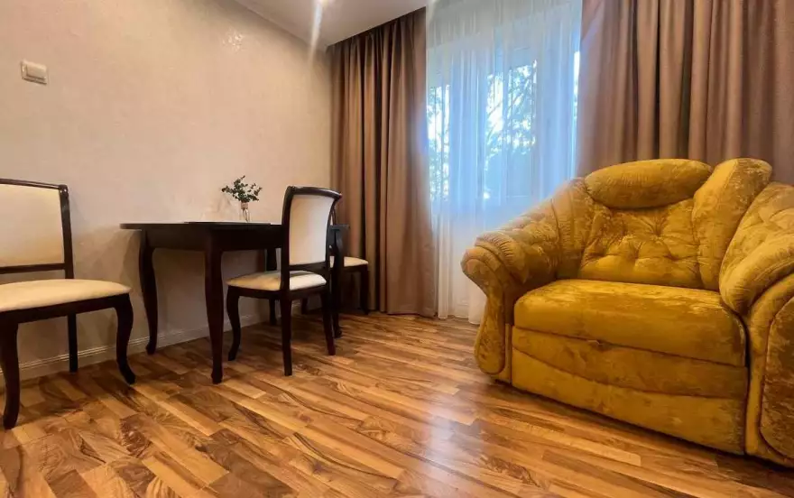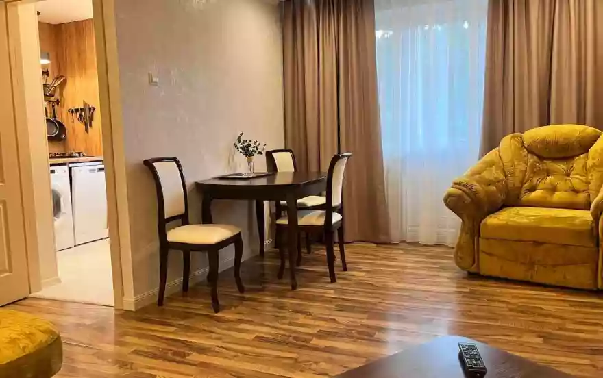 Полностью укомплектована для краткосрочного и длительного проживания - стиральная машина с сушкой, посудомоечная машина, ТВ в каждой комнате, смарт ТВ, Zala ТВ, интернет с высокой скоростью, оптоволокно, Wi-Fi, вся посуда как дома, подушки, одеяла и постельное бельё хорошего качества 100% хлопок, мягкие полотенца банные и маленькие, блэкаут шторы в спальне. и гостиной.
