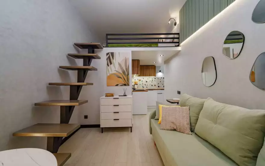 Max Apart предлагает снять уютную двухуровневую квартиру-студию с дизайнерским ремонтом посуточно рядом в тихом спальном районе Москвы рядом с парком. Имеется собственный выход в парк (сад).