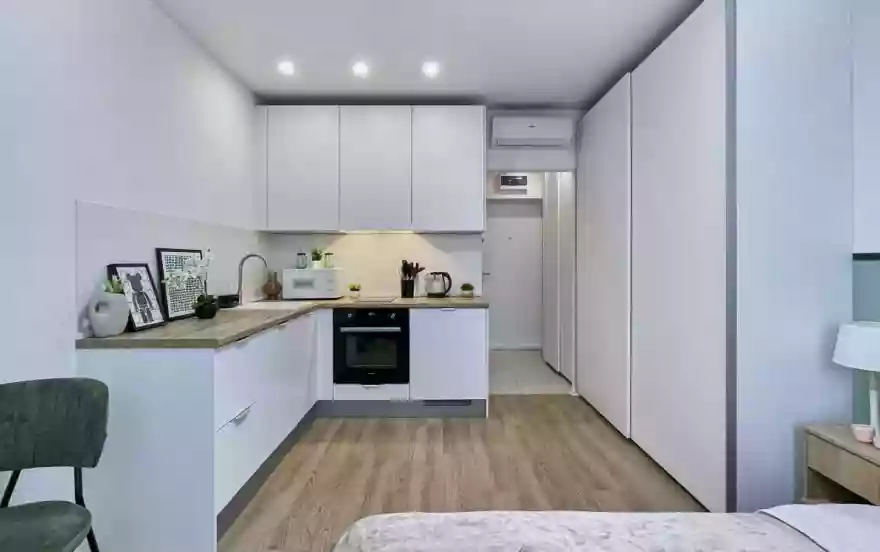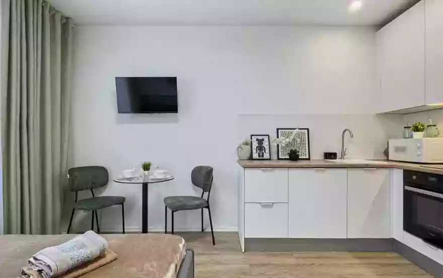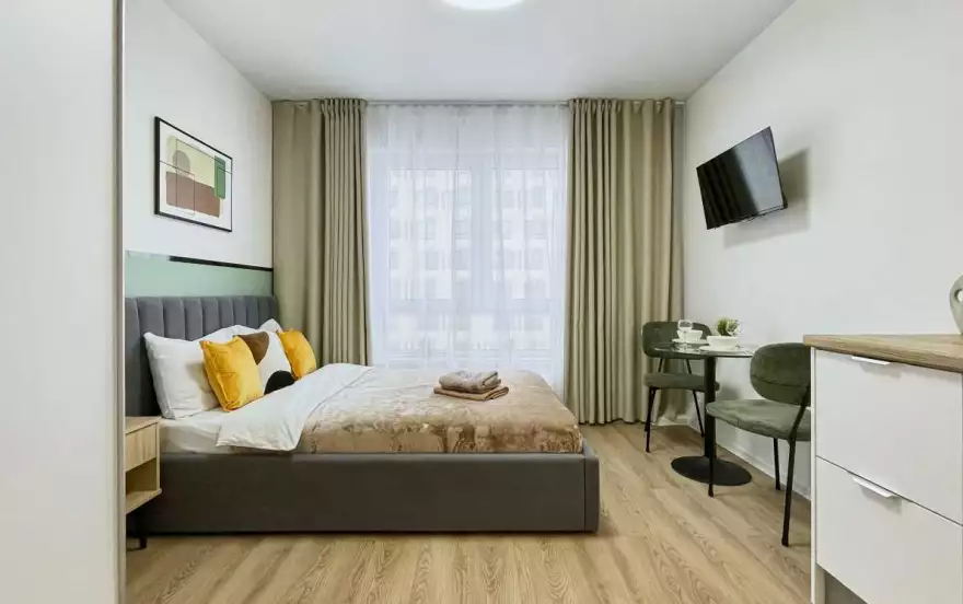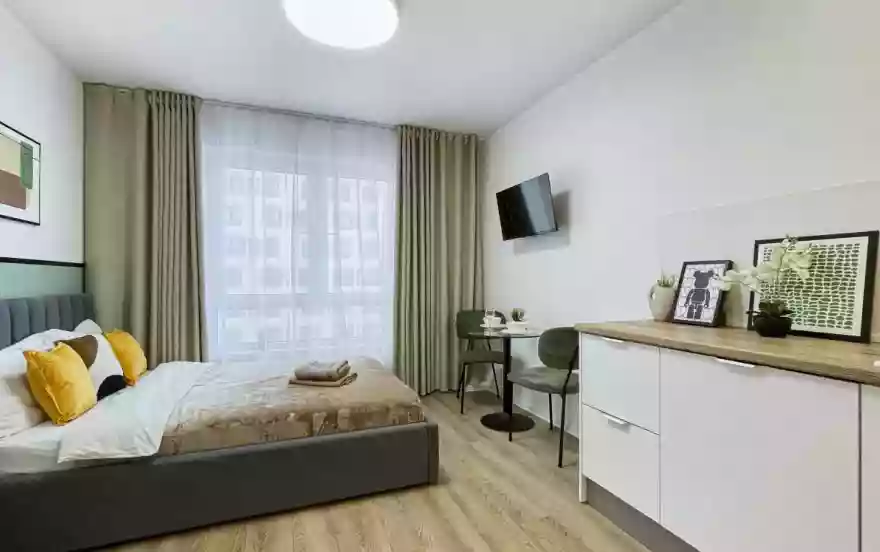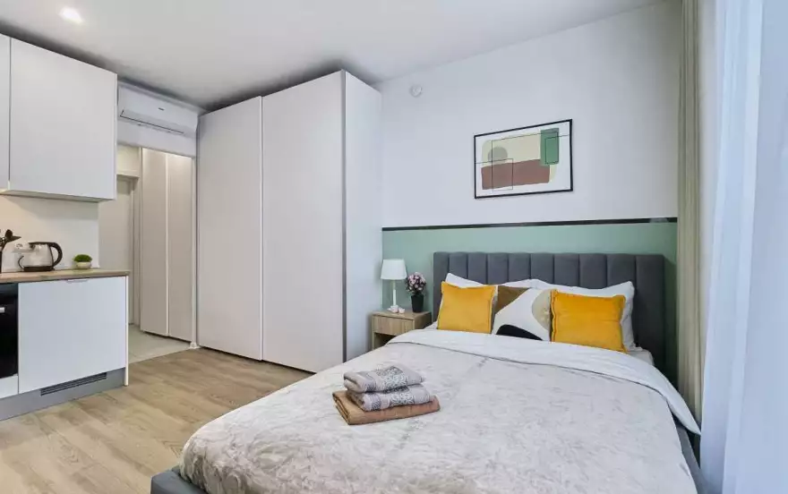 Удобства для бизнеса. Район активно развивается, здесь много офисов и бизнес-центров, поэтому квартира подойдет для краткосрочной аренды деловыми людьми.