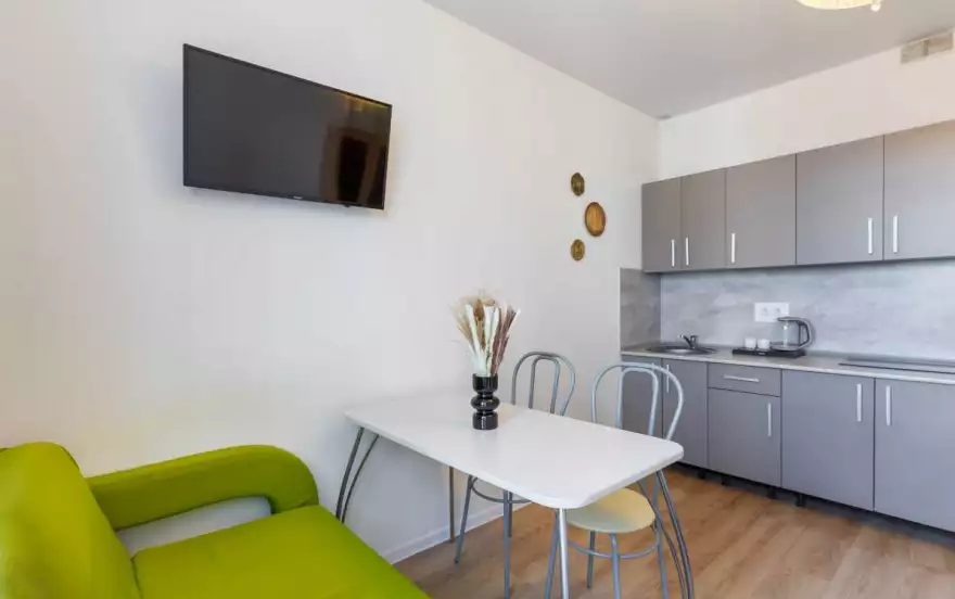 Квартира оборудована всем необходимым для комфортного отдыха. К вашим услугам мы предоставляем высокоскоростной Wi-Fi и ЖК телевизор с большим пакетом каналов, набор косметических принадлежностей, всю необходимую бытовую технику, посуду и столовые приборы.