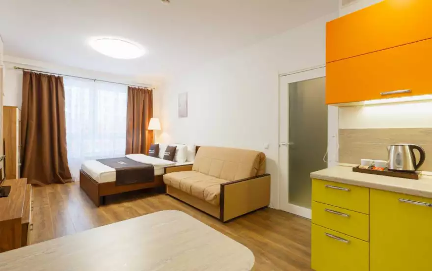 Добро пожаловать в нашу уютную комфортабельную квартиру-студию, расположенную в пешей доступности от метро «Аннино» или «Улица Академика Янгеля» в районе Южное Чертаново. Расстояние до ближайших аэропортов Внуково и Домодедово не более 29 км. Квартира оборудована всем необходимым для комфортного отдыха. К вашим услугам мы предоставляем высокоскоростной Wi-Fi и ЖК телевизор с большим пакетом каналов, набор косметических принадлежностей ,всю необходимую бытовую технику, посуду и столовые приборы.