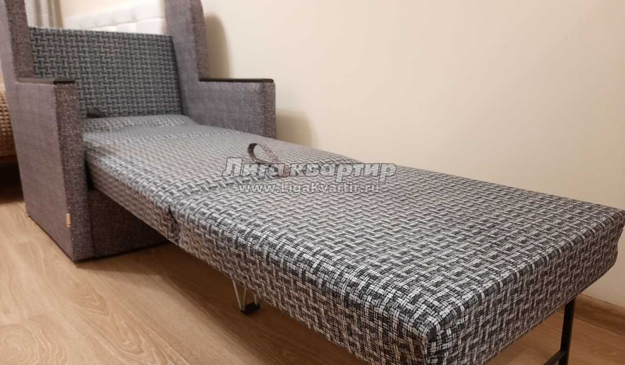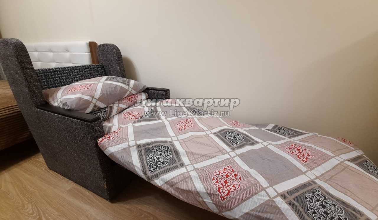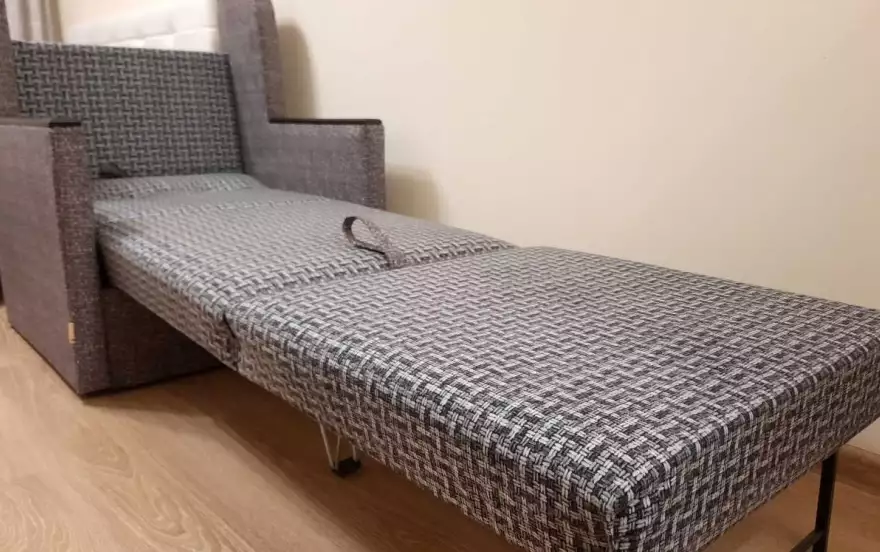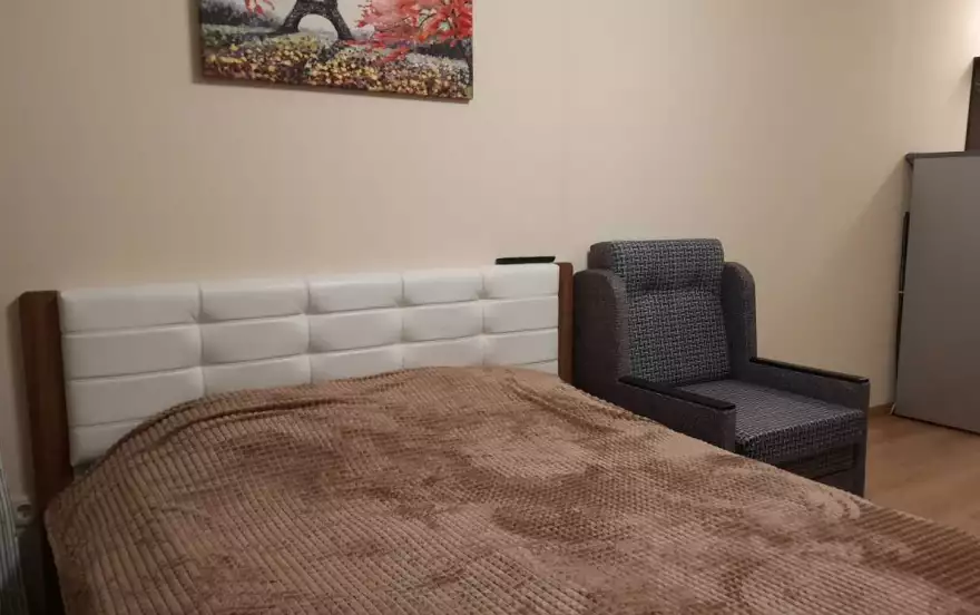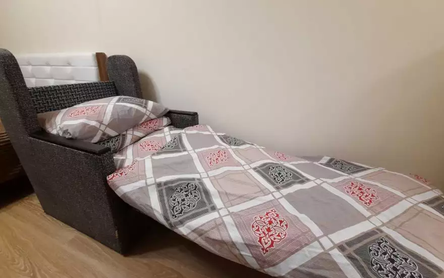 Двуспальная кровать с очень удобным матрасом, дополнительное спальное место - кресло кровать, размещение до 3х взрослых человек (2+1)