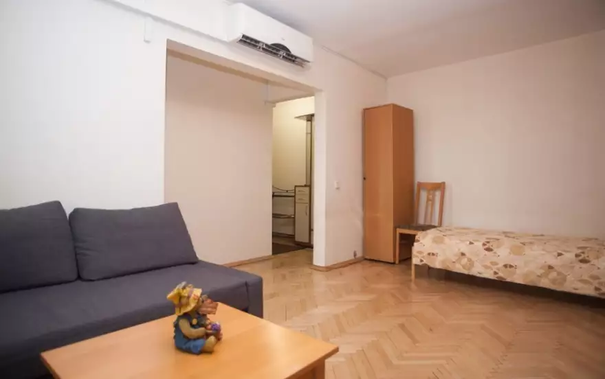 Спальные места: Квартира предназначена для проживания 1-3 человек при размещении на отдельных спальных местах или 1-5 человек при совместном размещении на двуспальных местах. В квартире: двуспальная кровать, односпальная кровать и раскладной двуспальный диван.