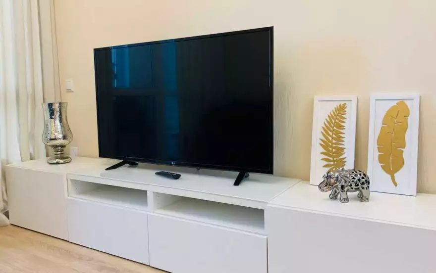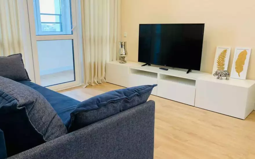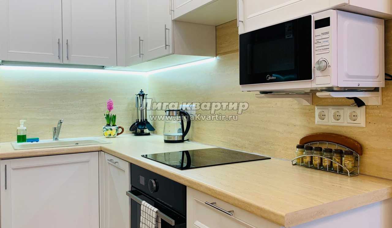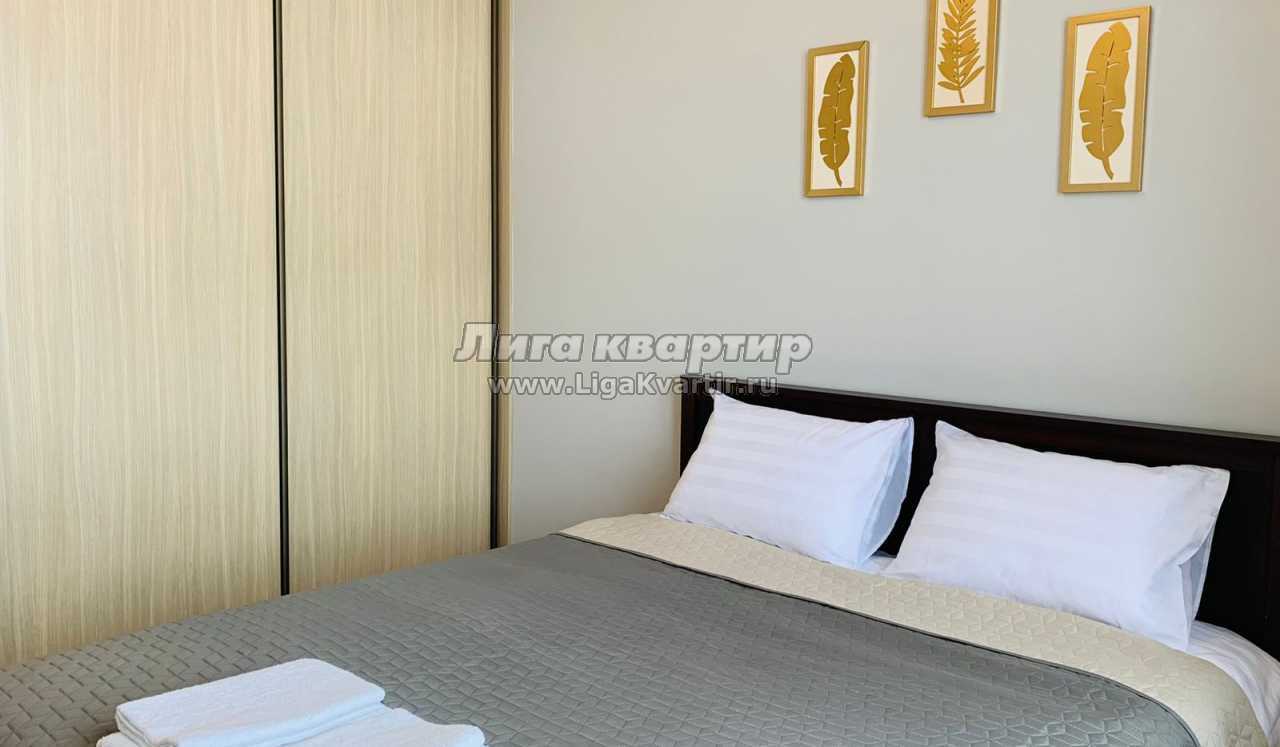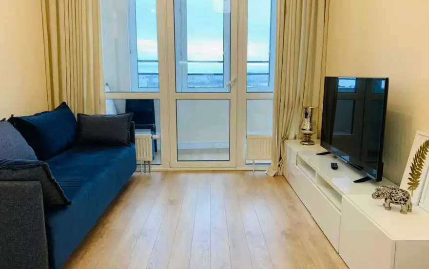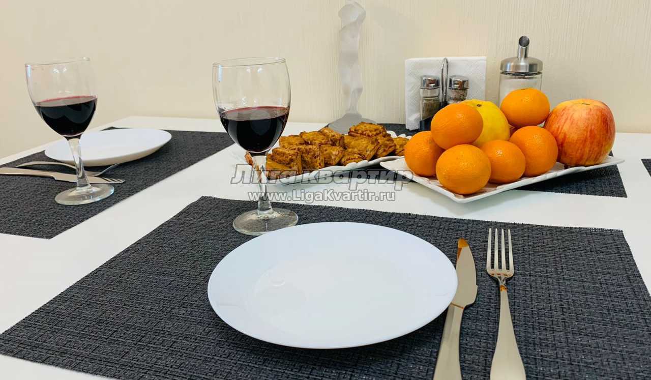 В квартире есть все для комфортного проживания. Двуспальная кровать и шторы блэкаут для комфортного сна, раскладывающийся диван, ЖК телевизор со Smart-TV, санузел с ванной и стиральной машиной, 2 вместительных шкафа-купе, кондиционер, прекрасная лоджия с рабочим местом и шикарным видом из окна, полностью укомплектованная кухня, в которой найдётся все необходимое: электрическая плита, духовка, посудомоечная машина, микроволновая печь, холодильник, обеденный стол, посуда и кухонная утварь.
