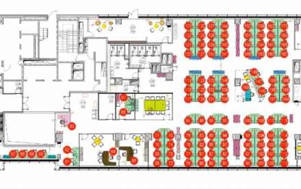 Смешанная планировка (open space) с выделенными кабинетами со стеклянными перегородками. Компьютерные и телефонные слаботочные сети полностью разведены до рабочих мест.