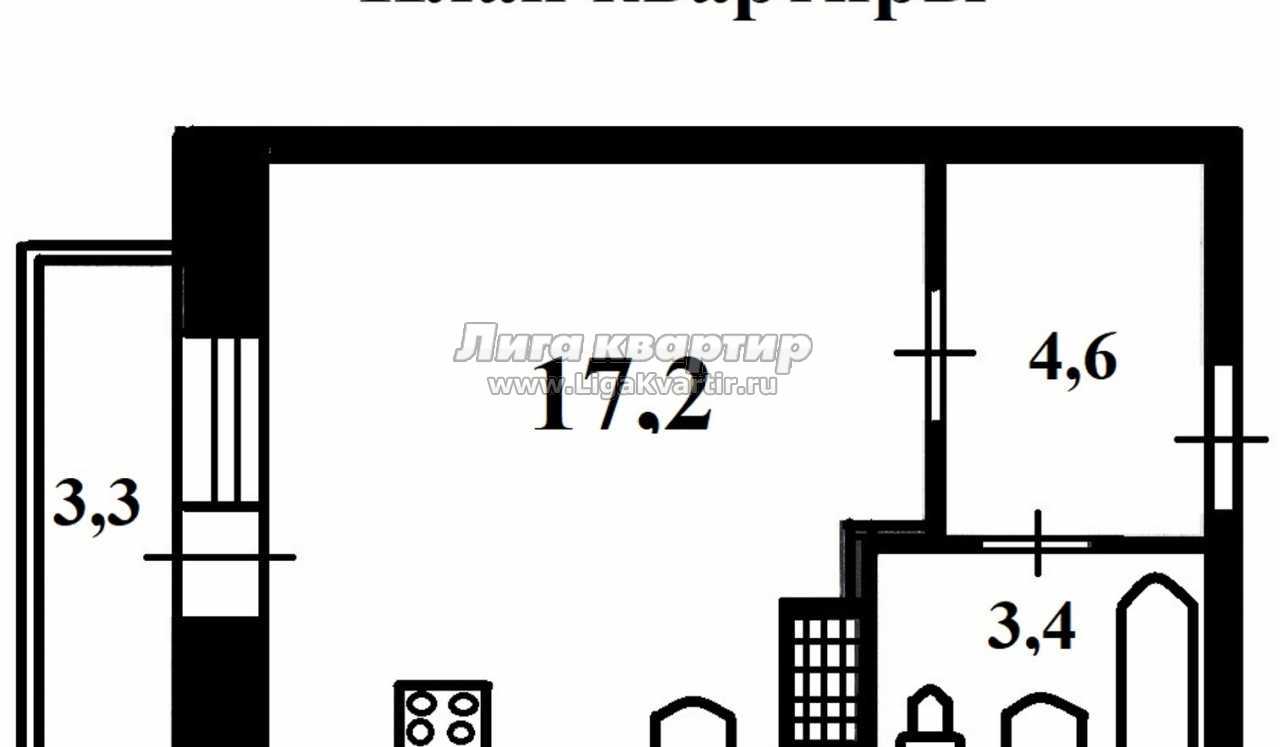 - Жилая площадь: 17.2 м²